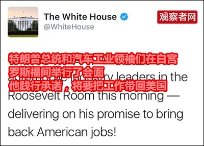 在记者会上,福特CEO菲尔德兹说道:“总统提出的经济政策让我们备受鼓舞。我昨天得知总统做出了退出TPP的决定。汽车行业一直反对TPP,因为TPP无法处理汇率操控的问题。总统有这样的勇气,我们表示欣赏和感激。能和新政府合作也令我们感到激动。”