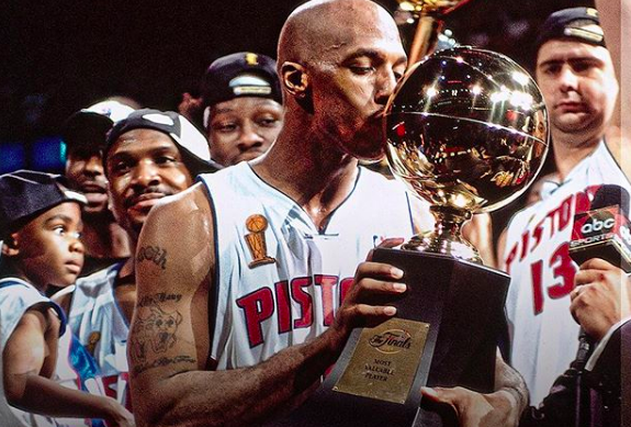 虎扑9月26日讯 活塞官方在Instagram上传了一张前NBA球员昌西-比卢普斯2004年亲吻总冠军奖杯的照片(见新闻配图)。