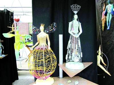 当然,艺术节上的重头戏还得是艺术家们棚子里的作品,据了解,这其中很多都是为赶艺术“大集”精心设计制作的。艺术品之美在于艺术家的个性表达与绝大部分参与者产生共鸣,而现场售卖的陶器、绘画、艺术摄影、工艺首饰等艺术品件件引人注目,华贵的饰品在简陋的棚子里照样流光溢彩,确实让参观者感到流连忘返。美国艺人的陶艺以亮丽的色彩和大胆的造型夺人眼目,似乎不太讲究做工的精湛;还有锈铜烂铁等金属垃圾,在这里也变废为宝,被焊接成了卡通人物、机器人、太空船甚至外星人等有想象力的作品。最令人称奇的是一种镶在镜框里的摄影作品。一开始,我还以为那是油画。后来,一个老太太走过来告诉我,这是相机照出来的,只是用了特殊的技巧。笔者看到,每个摊位上都有人分发名片,一是招徕生意,二是扩大影响。尽管不少作品价格不菲,还是有很多人慷慨解囊。